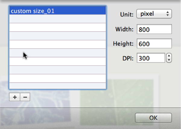 button to add your desired custom sizes, and CollageIt 3.5.0 for Mac will save the sizes you set.