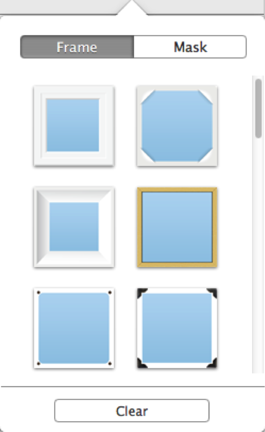 Click Clear to eliminate any mask or frame.