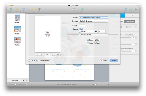 Click Print toolbar button to print collage directly.