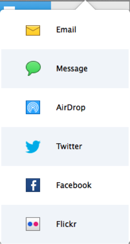 Click Share toolbar button to share collage directly via Email, Message, AirDrop, Twitter, Facebook, and Flickr.