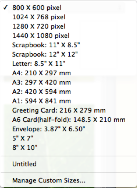 Click size combo box to choose the collage size you need. Click Manage Custom Sizes… to customize your collage size and DPI.