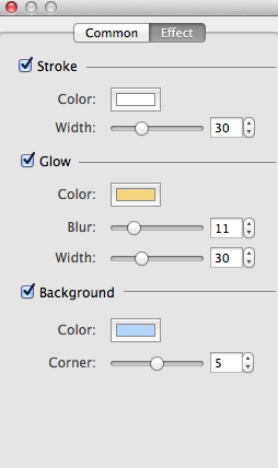 Apply text effects – Stroke, Glow, Background on Effect tab.