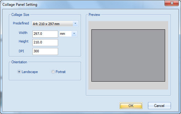 Click Page Setup button below the window to change the collage size, then the Collage Panel Setting window opens.